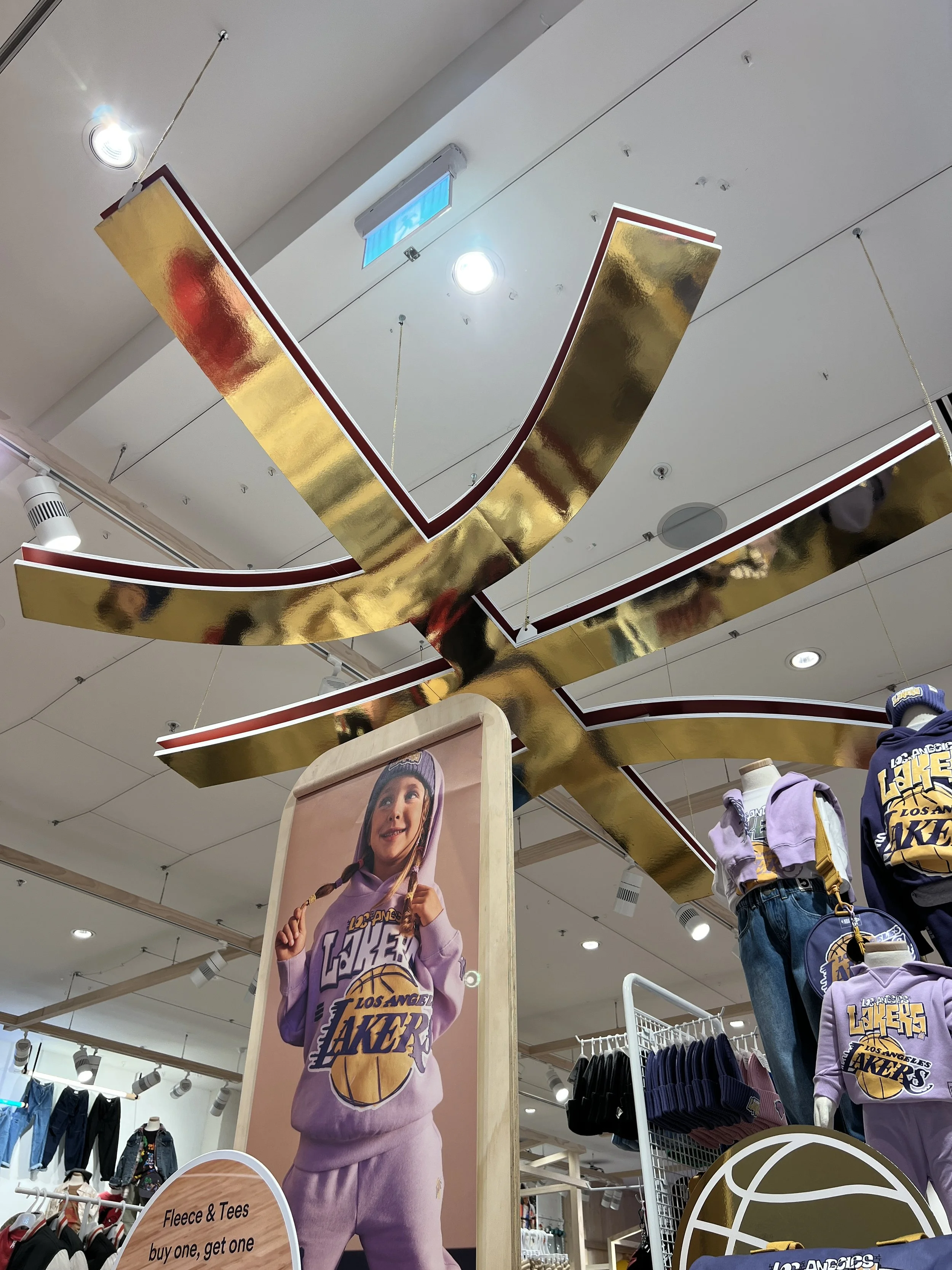 For the NBA Playoffs collaboration campaign, I designed a bold and dynamic scheme centered around the energy of competing teams. The window display featured oversized graphics, framed by basketball decals and bold "PLAYOFFS" lettering to create an eye catching statement. Inside the store, I CREATED a vibrant, team-focused environment with product displays themed around key TEAM INCLUDING: Chicago Bulls and Los Angeles Lakers. Elevated basketball-inspired elements, such as hanging golden structurE THAT WAS INSPIRED BY THE LINES OF A BASKETBALL created a sense of movement and excitement.